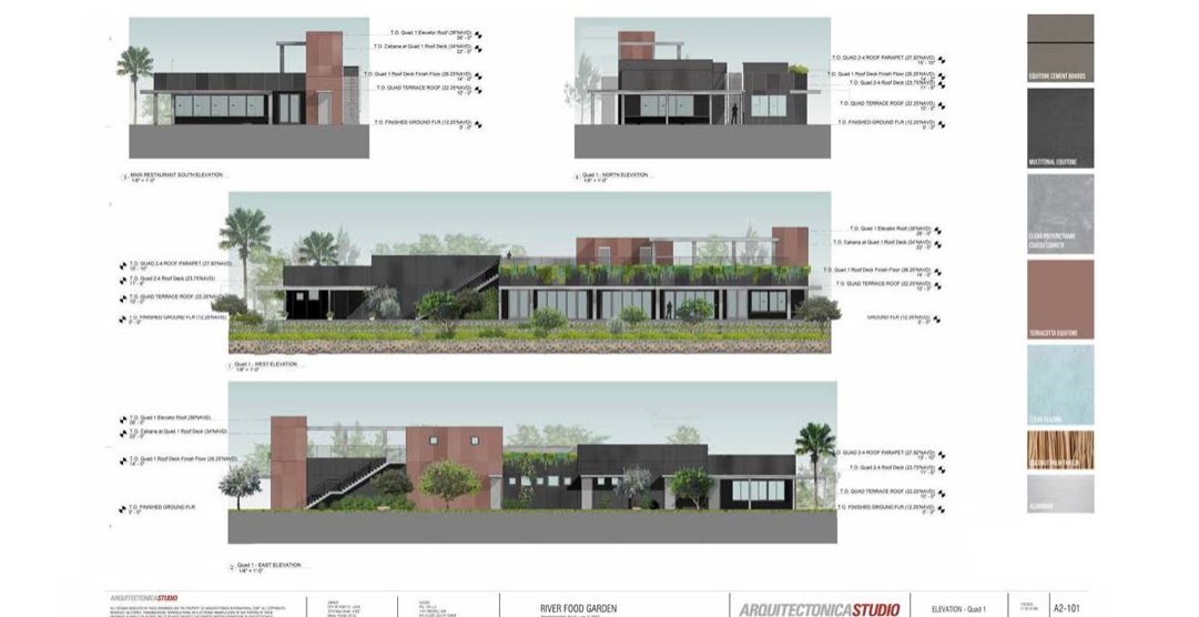Boutique food stations and restaurants are integrated in a thoughtful masterplan to invite families while promoting an open and multi-use space including a tiki bar, riverwalk and water-front amphitheater stage connecting the botanical gardens and new playgrounds.